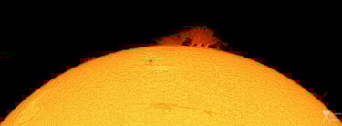 Július derekán napokig követtem egy hatalmas kiterjedésű széles filamentet a Nap felszínén, ami egy sötét sávnak látszott felülnézetből, vártam hogy befordulva, oldalnézetből milyen látványt mutat majd. Másnap, amikor belenéztem a naptávcsőbe leesett az állam, mintha a Kis Herceg bolygóját látnám a képmezőben. Különleges, fás ligetet formázó protuberancia látszott a Nap felszínén, több pontból emelkedett fel az izzó anyag, hogy szétterülve visszahulljon a Nap felszínére.