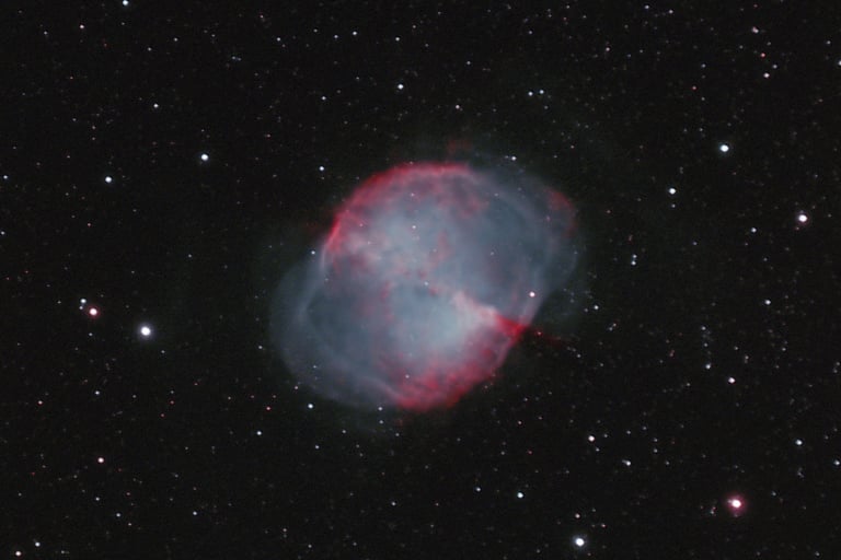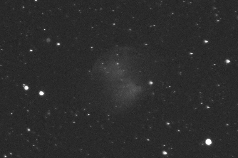 Ha szabad szemmel belenézünk egy fényerős távcsőbe, közepesen fényszennyezett ég alatt körülbelül ennyit látunk a fejünk felett lévő M27-es súlyzó ködből