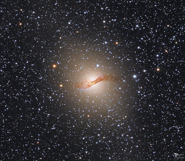 A "leg"-ek galaxisa. Az NGC5128 Centaurus A rádiógalaxis, az ötödik legfényesebb galaxisa a déli égboltnak, ezen kívül a legközelebbi óriásgalaxis, a legközelebbi rádiógalaxis, a legközelebbi, aktív maggal rendelkező galaxis. Távolsága 14 millió fényév körüli, már nem a Lokális Csoport tagja. Alakja elliptikus. Jelenleg is folyik egy kísérő galaxisával történő összeolvadása, ami az égbolt egyik legérdekesebb objektumává teszi. A középpontjában egy nagyon nagy tömegű (szupermasszív) fekete lyuk található és a galaxis nagyon erős rádió- és röntgenforrás.