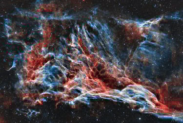 A Hattyú csillagképben található Fátyol köd egy 4000 évvel ezelőtt szupernóva robbanás hatalmas területen fátyolszerűen eloszló maradványa.