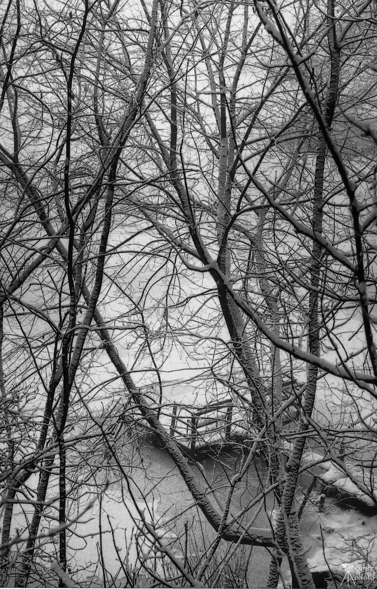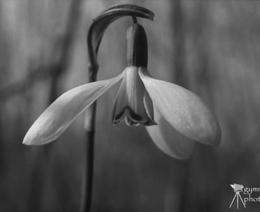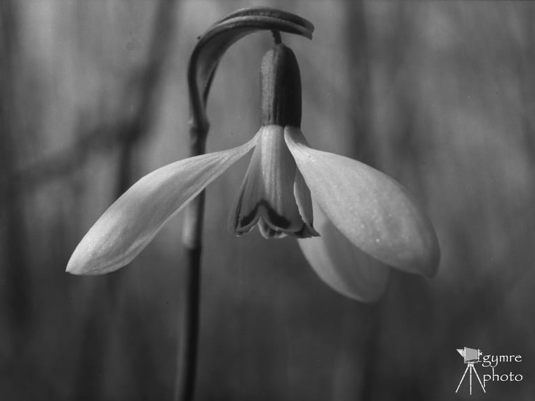 Egy apró hóvirág a Rácalmási szigetek hóvirágmezős árteréből, amelyről érkező fénysugarak nyomot hagytak az ezüsthalogenod rétegen, Mamiya 645 géppel Ilford SFX filmre .