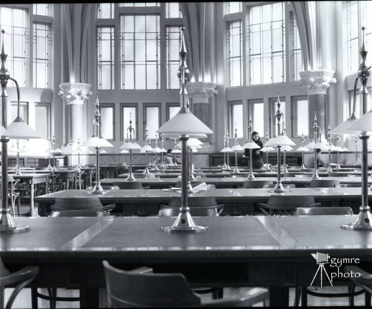 A Tudás Temploma. A Budapesti Műszaki Egyetem könyvtára amely az egyetem kápolnájába volt berendezve, legalábbis amikor még egyetemre jártam. Mamiya 645 géppel Ilford SFX filmre .